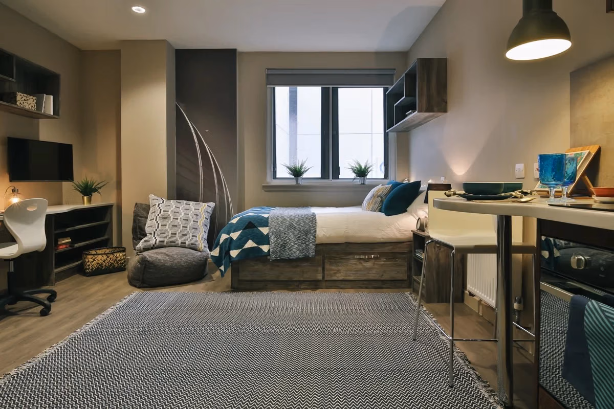 Your tenancy includes newly installed TVs, superfast WiFi, smart laundry facilities, and access to the Hello Student app, where you can request maintenance, browse events, manage parcels, and connect with other residents.