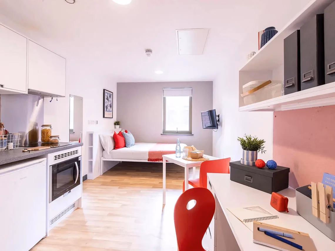 Student Studio Sheffield为全独立套间,含独立卧室、卫浴及小型厨房,无需共享任何区域,隐私与独立性最高,适合希望拥有完整私人空间的学生。