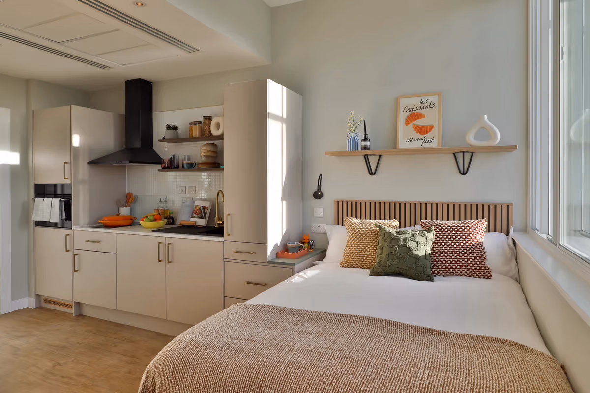 一体化独立空间,配备卧室、独立卫浴、起居区及小厨房 —— 非常适合喜欢安静的学生