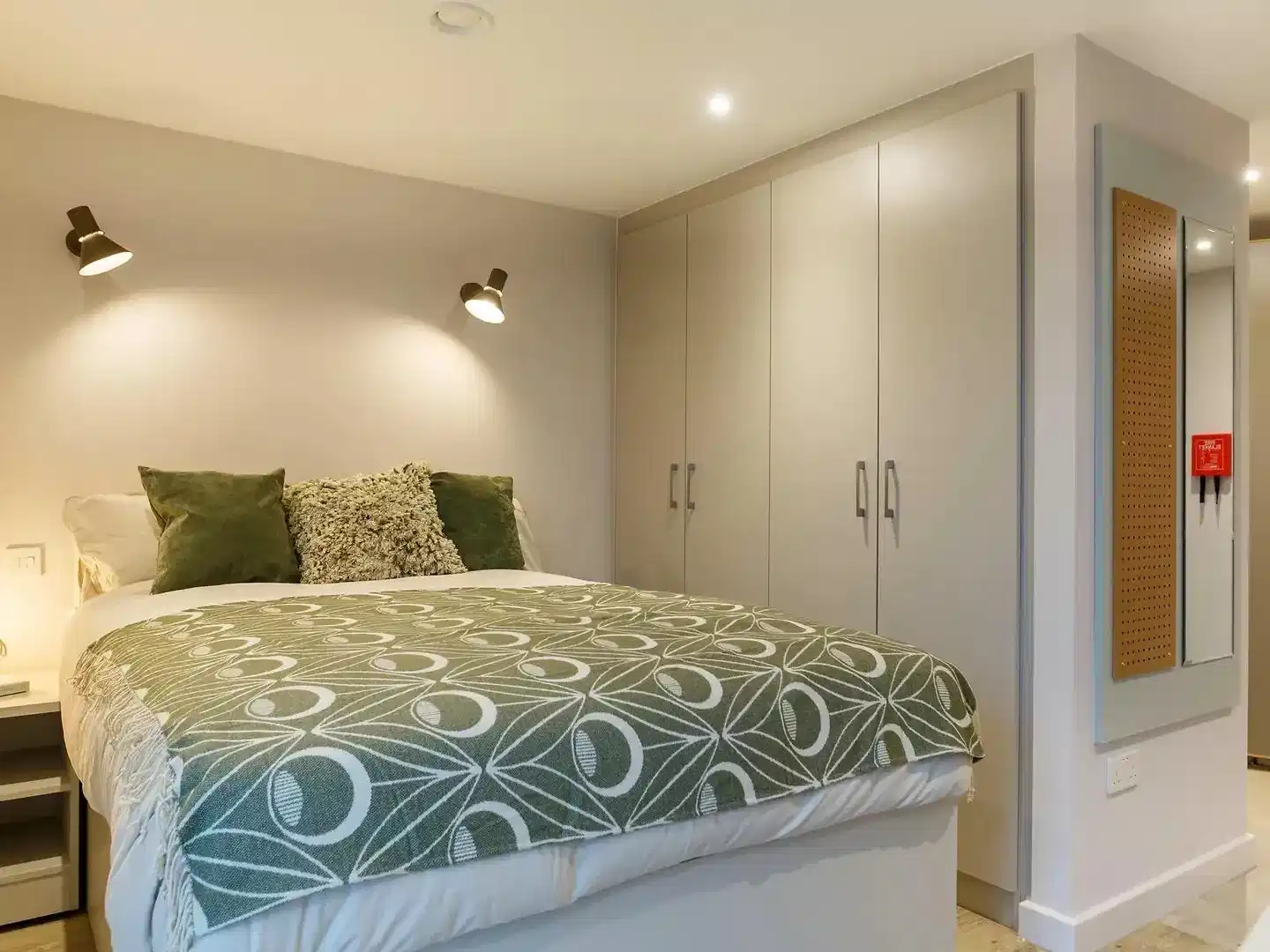 在Cosmos Sheffield公寓,学生可从多种时尚房型中选择,包括Premium Studio Accessible、Classic Studio、4 Bed En-suite,甚至10 Bed En-suite apartments。每间房间均精心设计,打造舒适实用的家。面积最大可达14.4平方米,多数户型配有独立卧室、独立卫浴及共享厨房。每间房均配备带床下储物双人床、衣柜、床头柜、衣帽钩、置物架及遮光帘,提升居住舒适度。学习区布局合理,配有书桌、椅子、USB插座及洞洞板,方便整理物品。现代化配置包括32"电视、独立淋浴间及镜子,部分户型还设有用餐区与独立出入口。Cosmos Sheffield公寓的公共空间温馨宜人,休息区与沙发区配有50"电视,全套厨房配备四眼电磁炉、组合烤箱及全尺寸冰箱冷冻柜,并带用餐区,适合多人共餐。