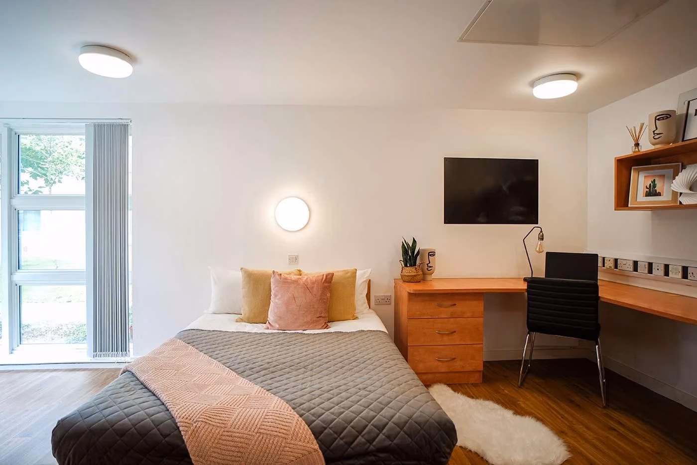 埃克塞特许多学生公寓提供私人单间,通常配备床、书桌,部分带独立卫浴。卧室完全私密,同时可使用共享区域,兼顾独立与社区氛围。埃克塞特私人学生公寓一般配有洗衣房、自习室等必备设施。
