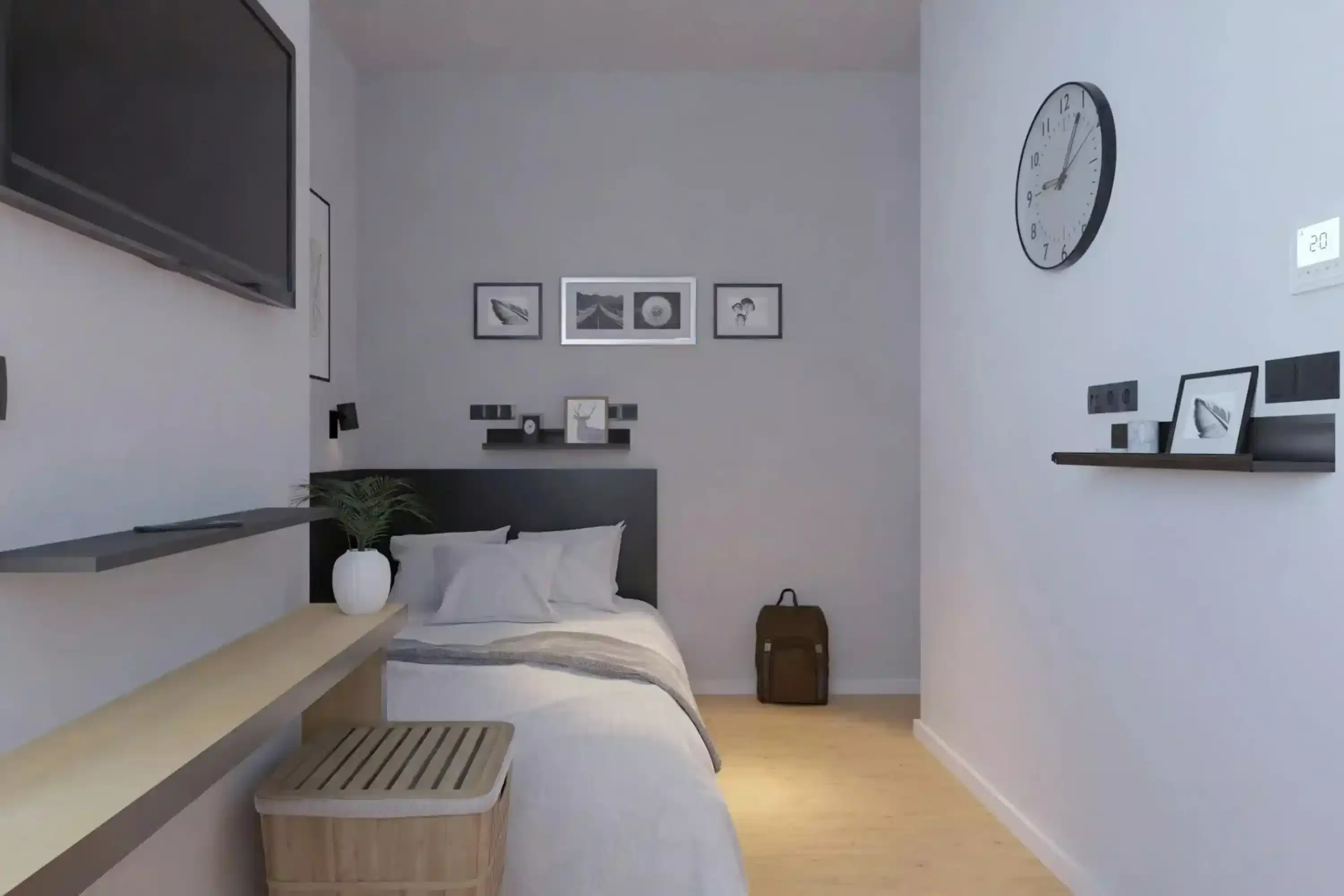 1. 独卫单间:独立卧室带独立卫浴,共用厨房,常见于 Student residence Pamplona 物业。