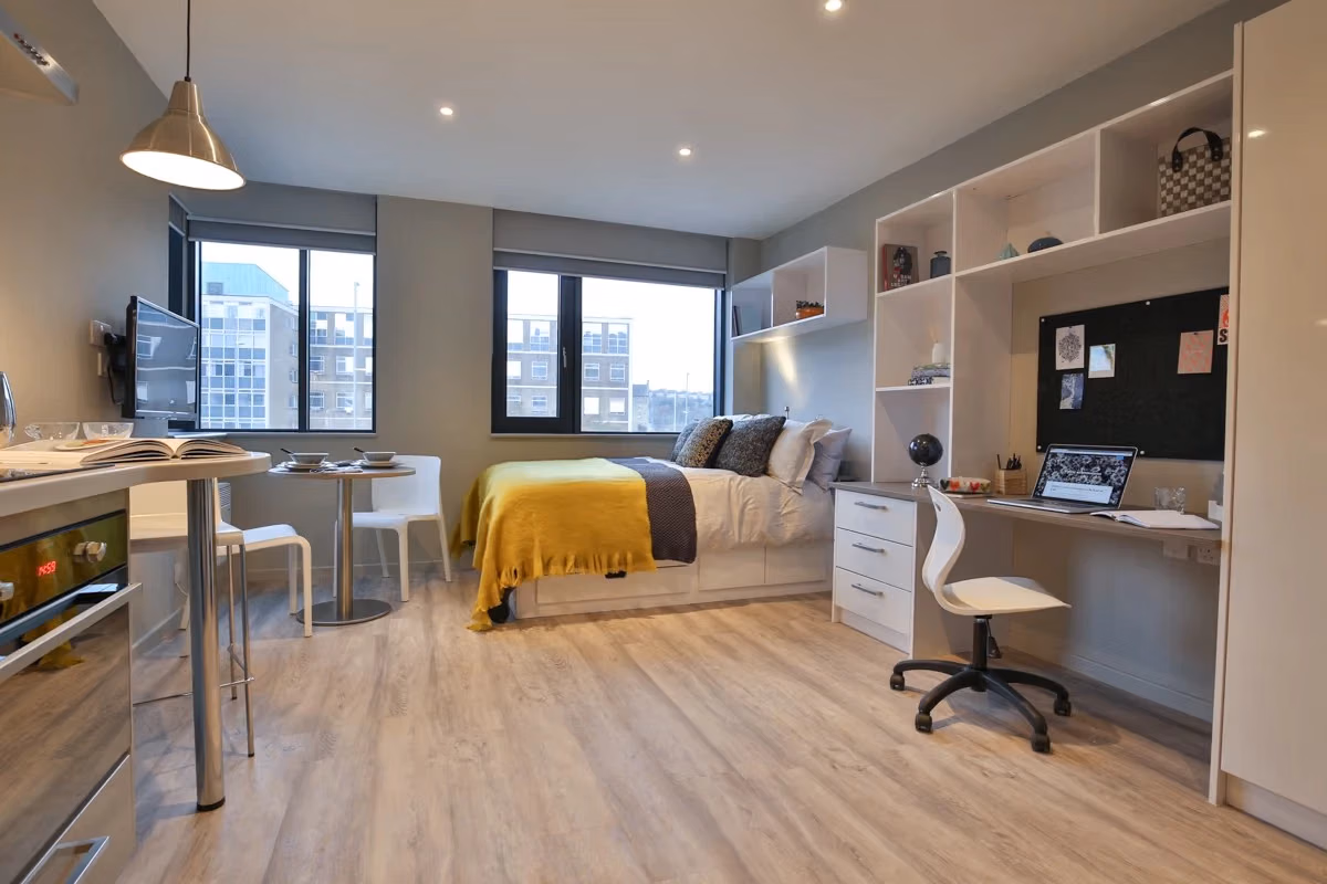 Your tenancy includes newly installed TVs, superfast WiFi, smart laundry facilities, and access to the Hello Student app, where you can request maintenance, browse events, manage parcels, and connect with other residents.