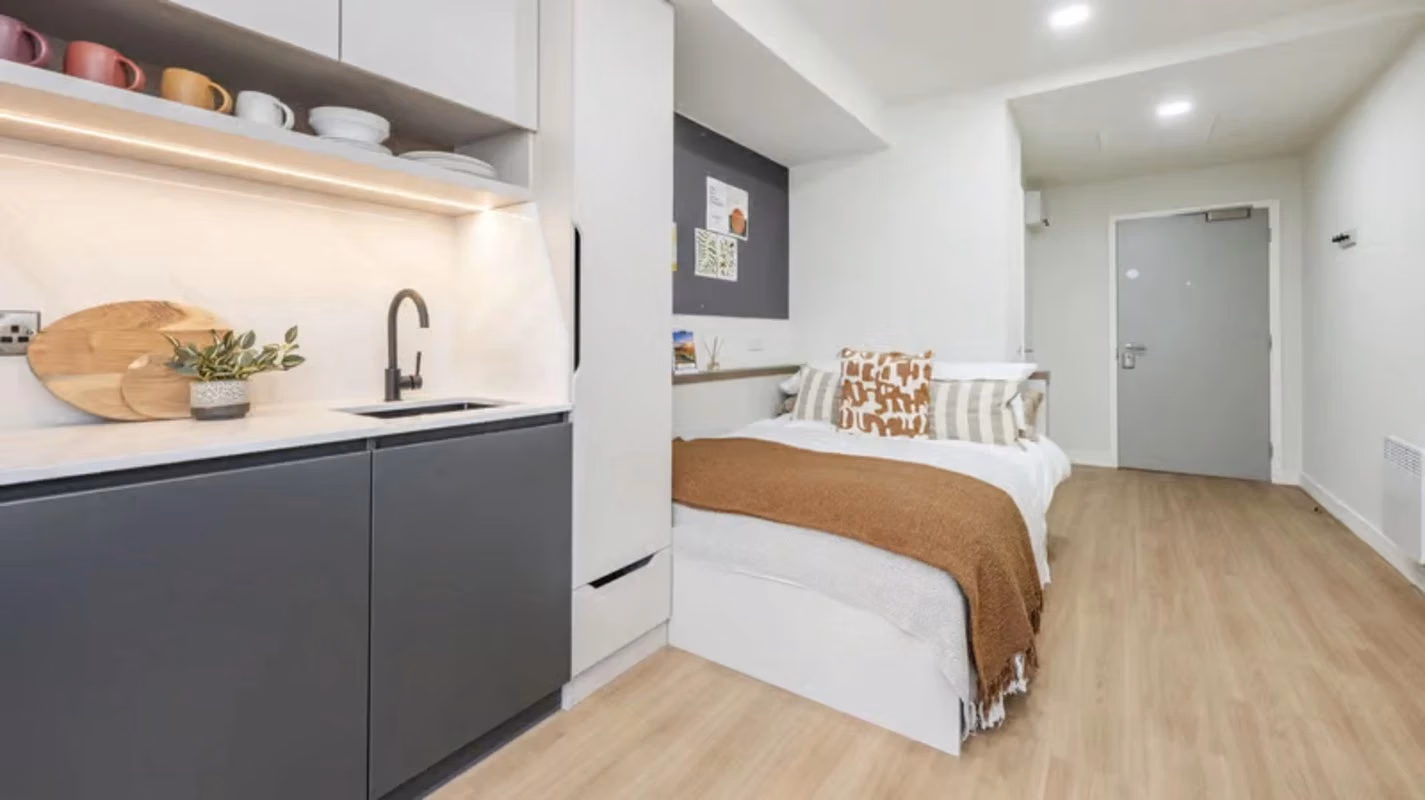 3. 单间公寓(Studio Apartments):专为注重隐私与独立的学生设计,配备独立卧室、卫浴及小厨房。单间公寓尤其受研究生或偏好安静专注环境的同学欢迎。Paisley 单间公寓的平均周租金约为 £110 至 £140。