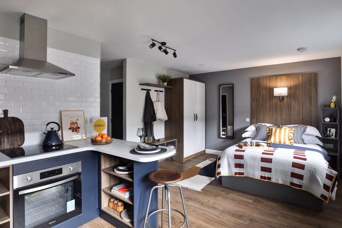 一体化独立空间,配备卧室、独立卫浴、起居区及小厨房 —— 非常适合喜欢安静的学生