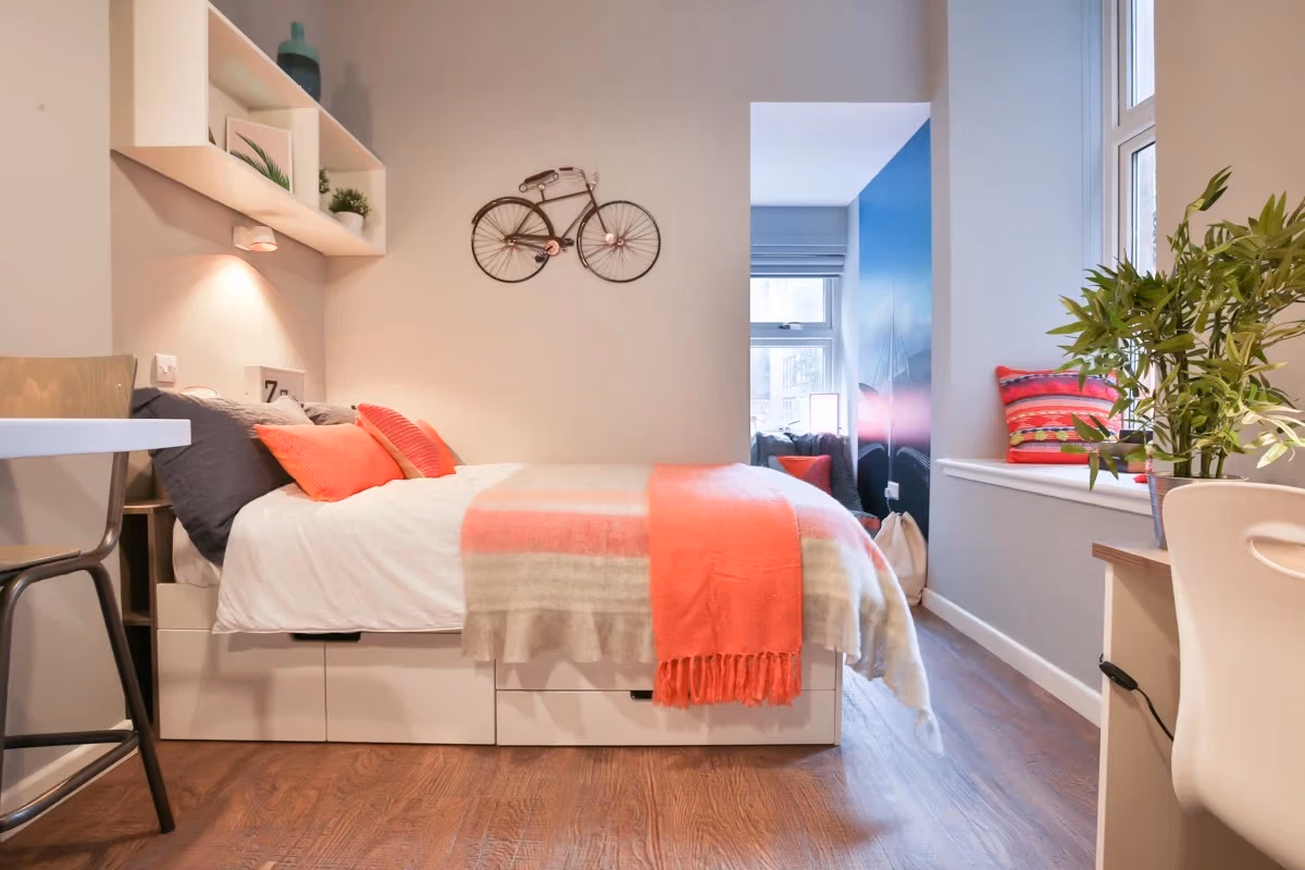 Your tenancy includes newly installed TVs, superfast WiFi, smart laundry facilities, and access to the Hello Student app, where you can request maintenance, browse events, manage parcels, and connect with other residents.
